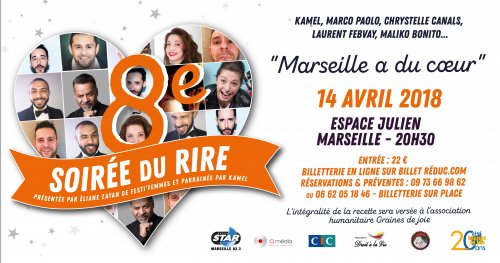 Graines de Joie organise la 8ème SOIRÉE DU RIRE « Marseille a du Cœur » En partenariat avec l’association « Droit à la Vie » Parrainée par Kamel et présentée par Eliane Zayan de Festi’Femmes.